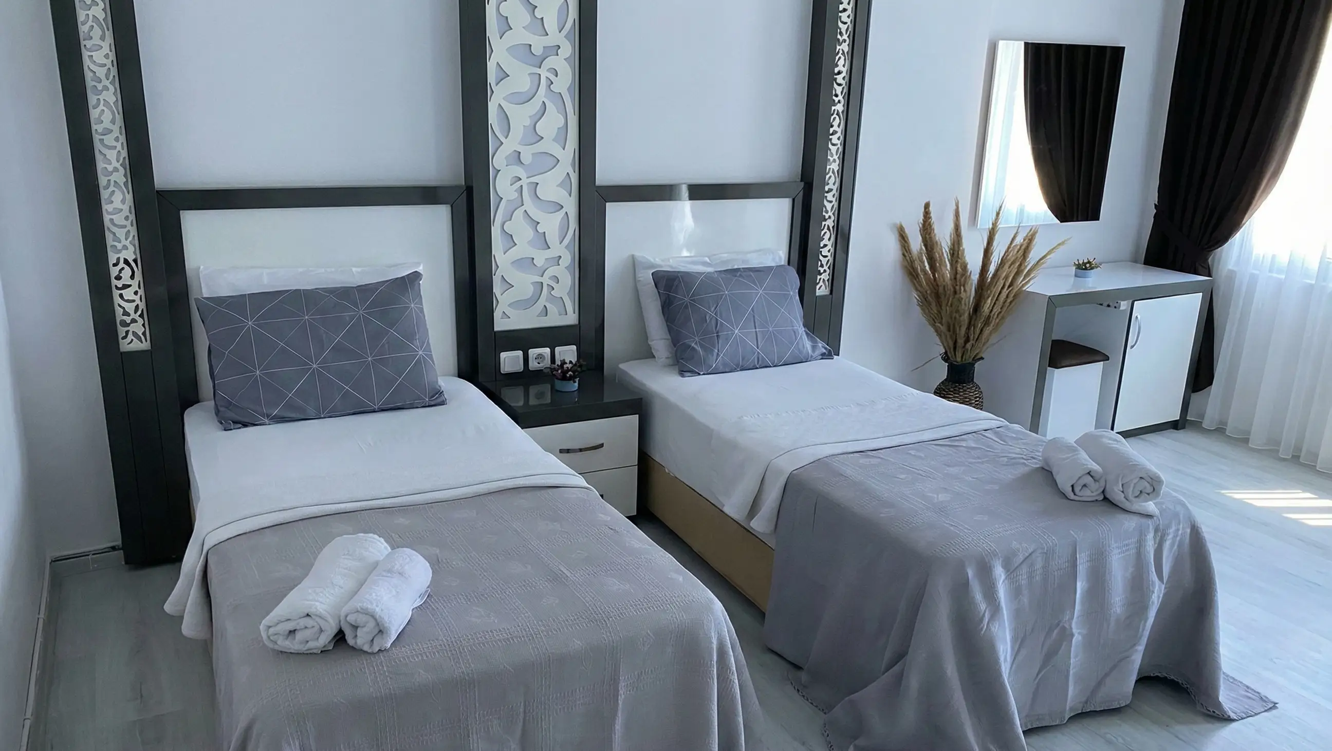 Üç ayrı yatak seçeneği ile arkadaş grupları veya aileler için ideal, geniş ve fonksiyonel konaklama.